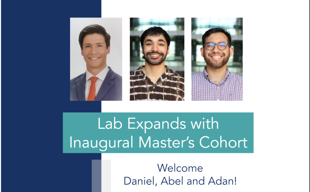We are pleased to welcome Daniel Gonzalez, Abel Cuevas, and Adan Zorrilla as the inaugural cohort of Master’s students from the MSAP program. Their addition strengthens our team and underscores our commitment to training the next generation of scientists.